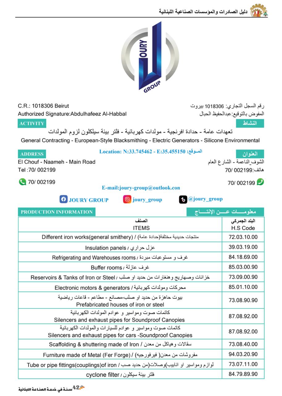 | النشاط | تعهدات عامة- حدادة افرنجية - مولدات كهربائية-فلتر بيئة سيلكلون لزوم المولدات |
