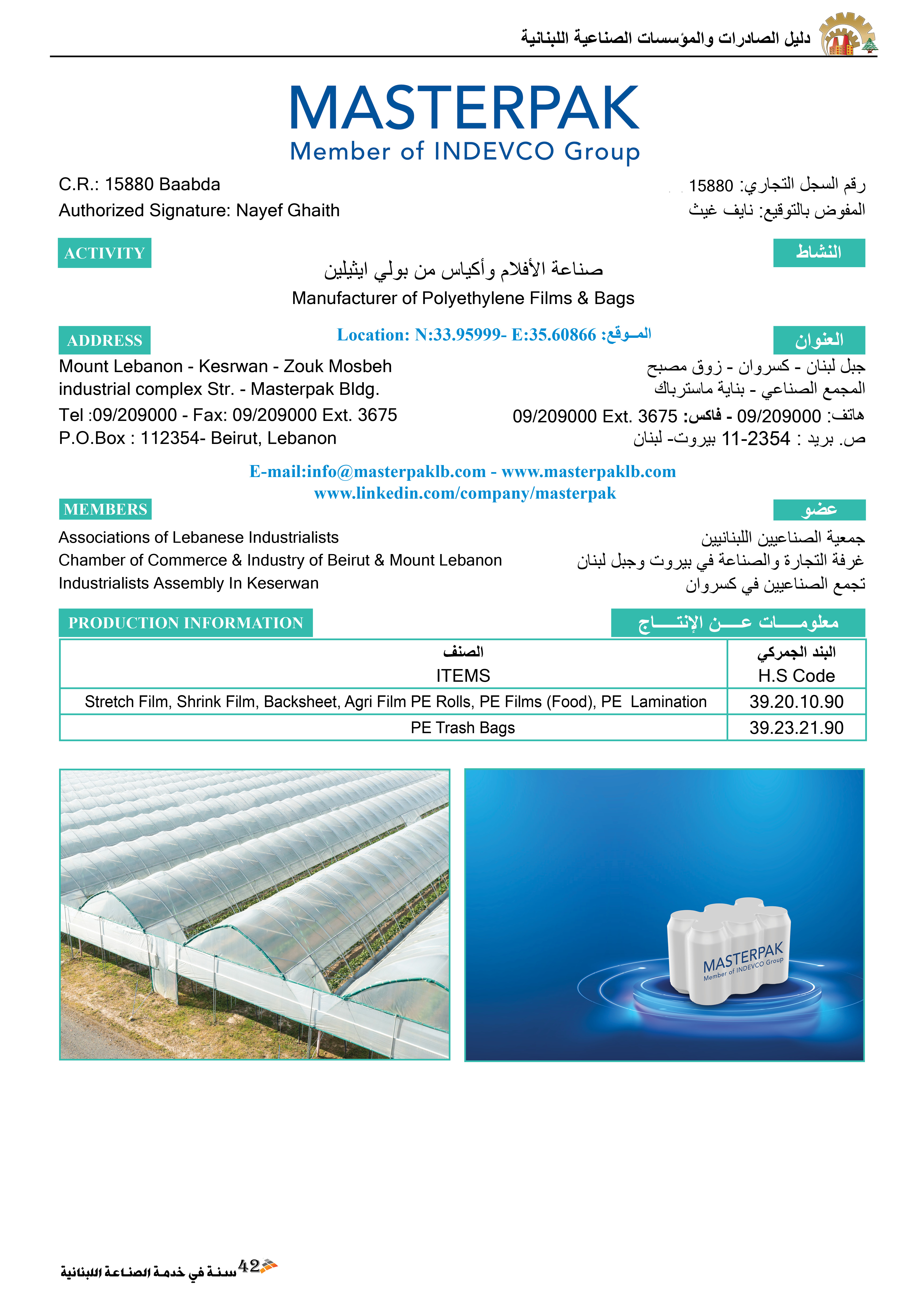 | الموقع الالكتروني | www.masterpaklb.com |