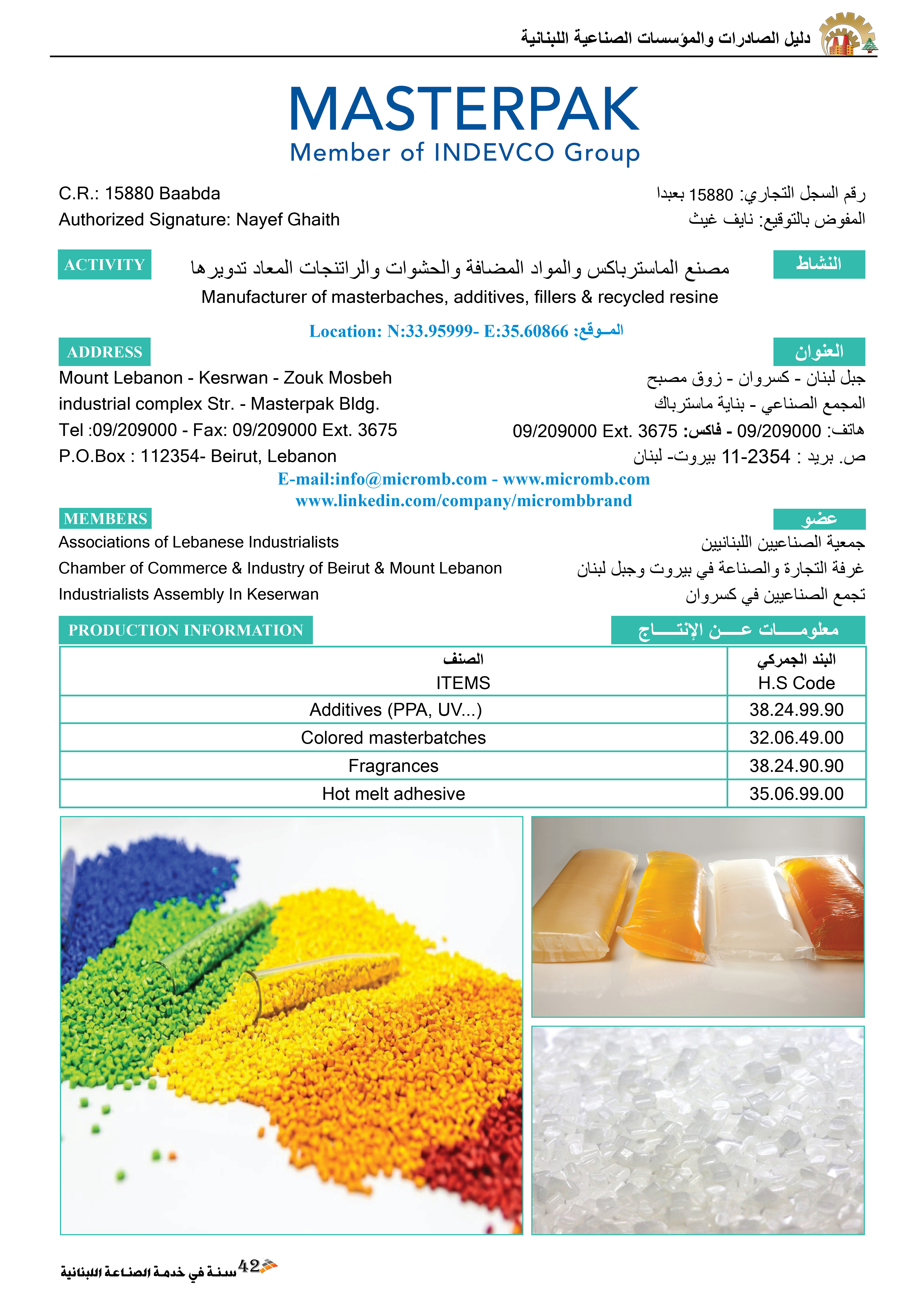 | النشاط | مُصنِّع الماسترباكس والمواد المضافة والحشوات والراتنجات المُعاد تدويرها |