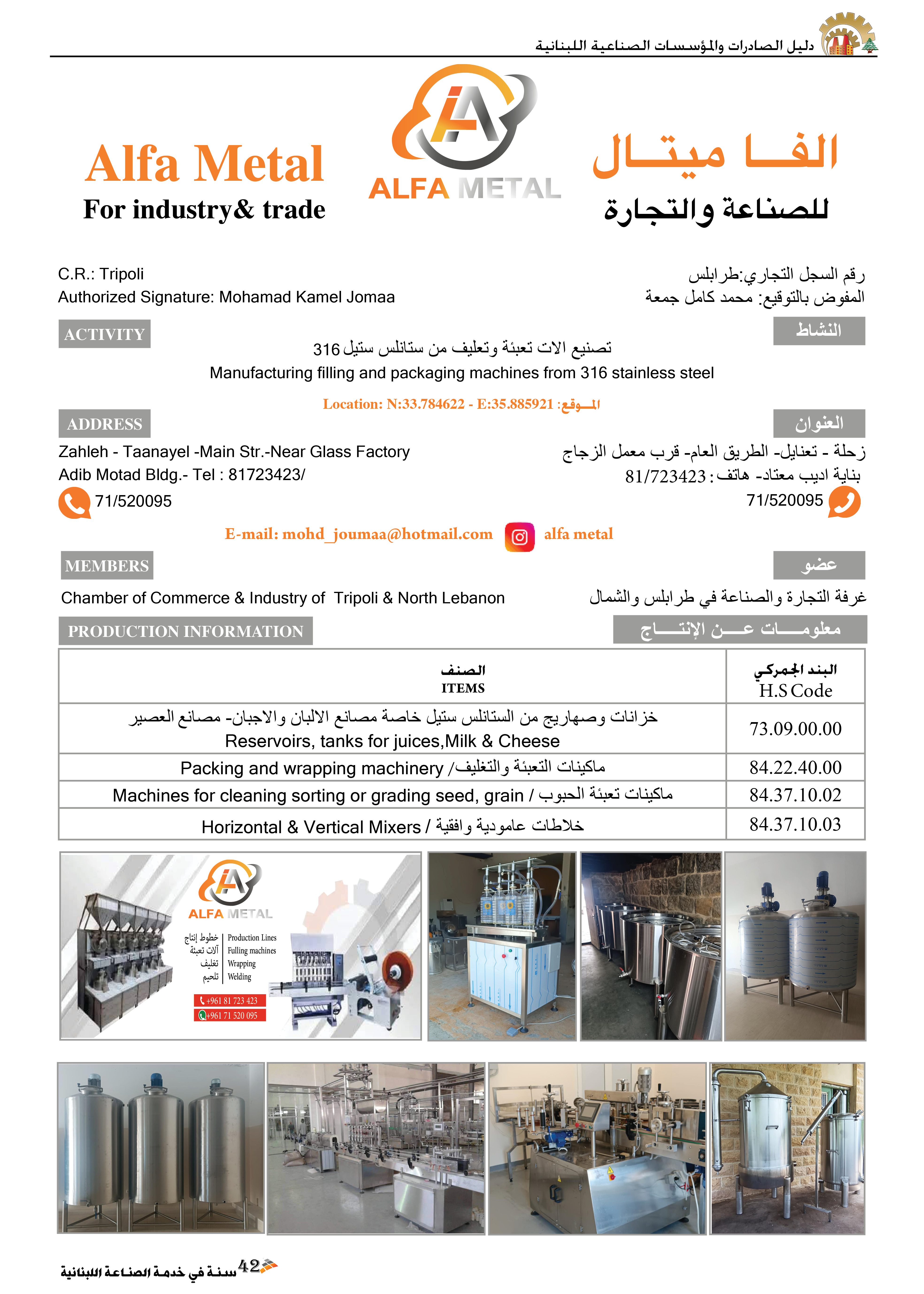 | انستغرام | alfa metal |
